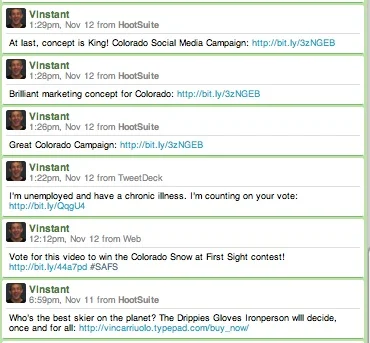Yet the campaign failed miserably (very low video submissions/participation/viral growth) due to one small, costly strategic error. It barred skiers--the group most likely to respond, participate and extoll the virtues of the campaign virally. During the same time period, Utah ran a similar video-submission campaign targeting skiers that, judging by the number of video submissions, left Colorado standing frozen at the bottom of the bunny hill.
